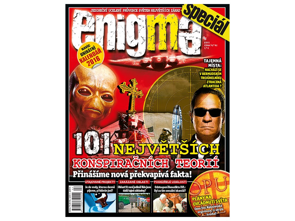 Napadlo vás někdy, že věci nemusejí být takové, jaké se zdají být, nebo jak se o nich oficiálně hovoří? Potom je ENIGMA SPECIÁL právě pro vás. Zaměřili na nejslavnější konspirační teorie. Budeme zkoumat utajované projekty, jež se měly odehrávat v minulosti, nebo údajně probíhají i dnes. Vezmeme vás na přísně střežená místa, kde se mají odehrávat neuvěřitelné věci. Zaměříme se na podezřelé události, které měly ve skutečnosti zcela jinou podstatu než se veřejnost domnívá. A mnoho dalšího.